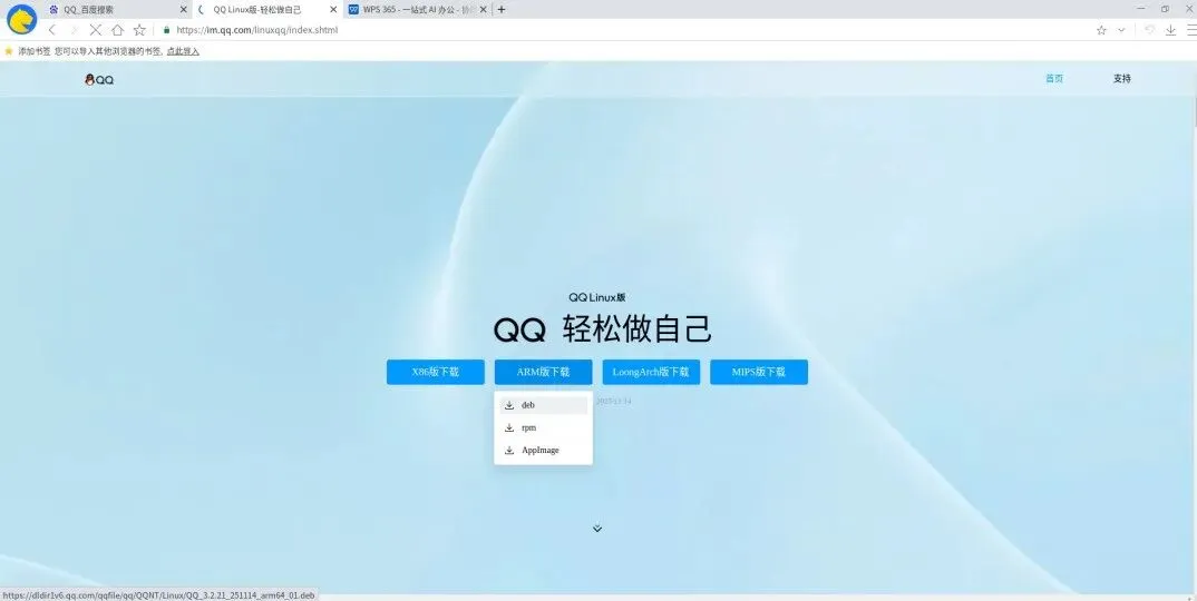 百度搜索腾讯QQ进入官网,下滑找到【Linux】点击进入。