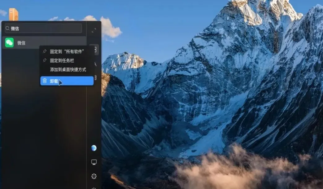 也可以直接在【开始】菜单搜索需要卸载的软件,点击右键【卸载】完成卸载。