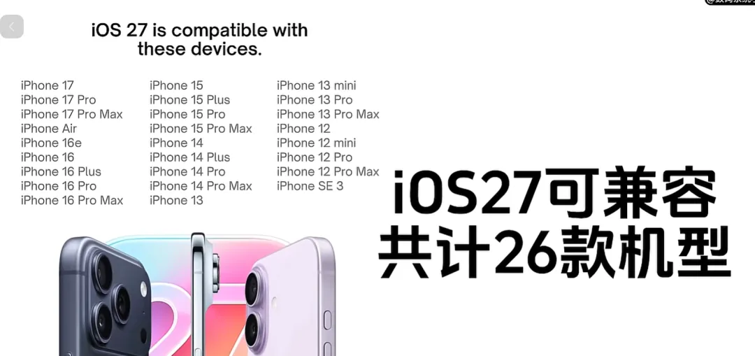 先把时间捋清,眼下是三月,iOS 27没发,连公开测试都没有,按照苹果每年的节奏,六月WWDC露面,给开发者推第一个测试包,九月跟iPhone 18一起给所有人推正式版,现在还在iOS 26的维护尾声,大家手机里看到的多是26.3或者26.4的测试消息,短视频里喊着来了的,多半是把内部代号或者代码片段当成了整套系统,也可能是把测试节奏说成了正式上线,群里有人丢描述文件链接,说能抢先体验,这种链接点了要当心,正规渠道现在根本没有iOS 27可下,别把手机装了来路不明的东西,出了问题也没人负责。