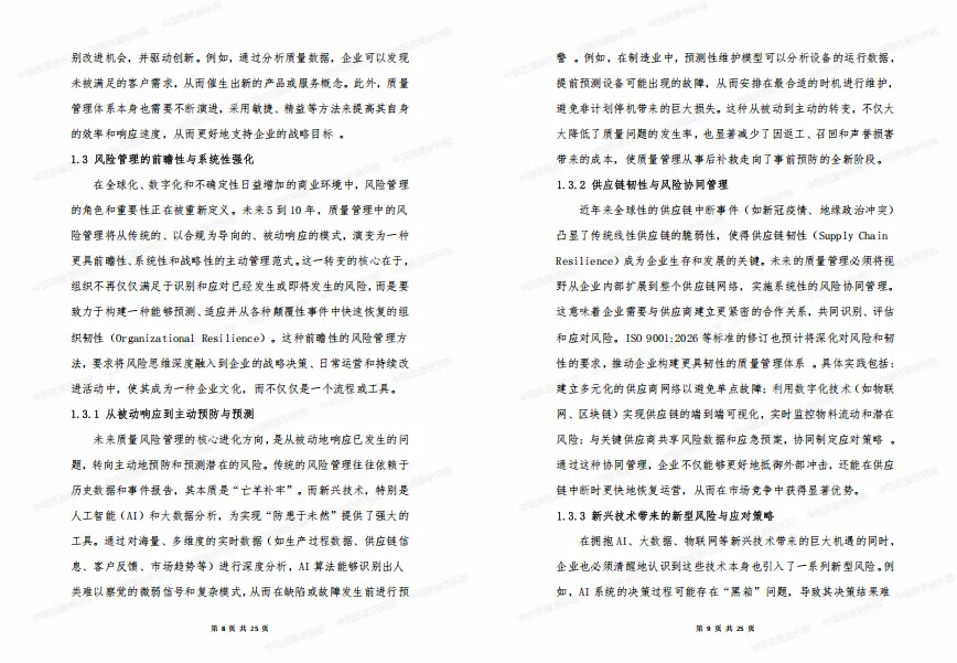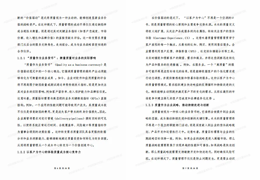 二是从“合规驱动”到“价值驱动”的根本性转变,质量将被视为一种“业务货币”,其成功将通过客户体验、业务增长和品牌资产等价值指标来衡量;