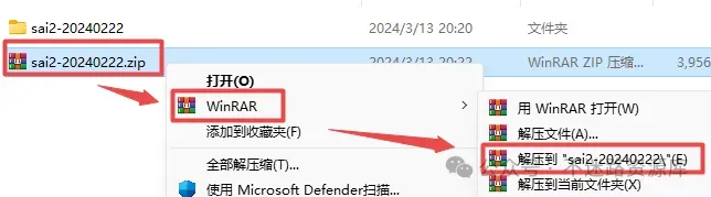 1.选中下载的压缩包,然后鼠标右键选择解压到“sai2-20240222”(没有解压选项点这里)