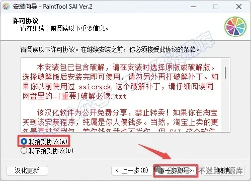 6.勾选“我接受协议”,点击“下一步”