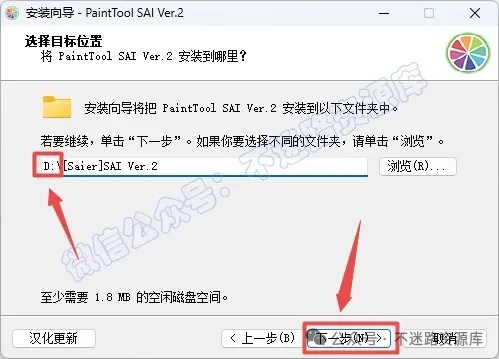 7.选择软件安装路径,建议和教程中的保持一致,本例安装到D盘(将路径地址中的首字符C改为D表示安装到D盘,安装路径不要出现中文),点击“下一步”
