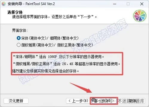 9.选择适用的字体,点击“下一步