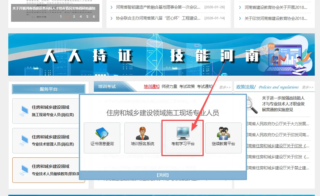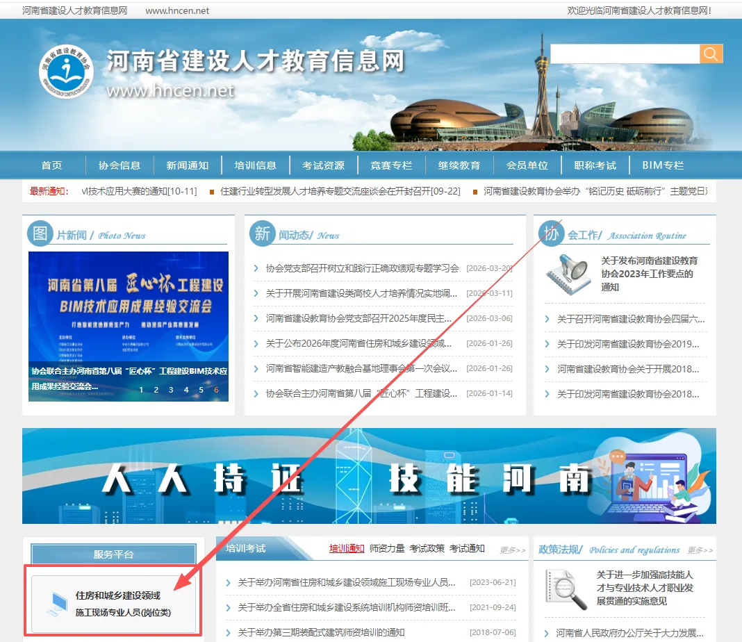由【河南省建设人才教育信息网(网址:http://www.hncen.net/ )】首页的入口进入。
