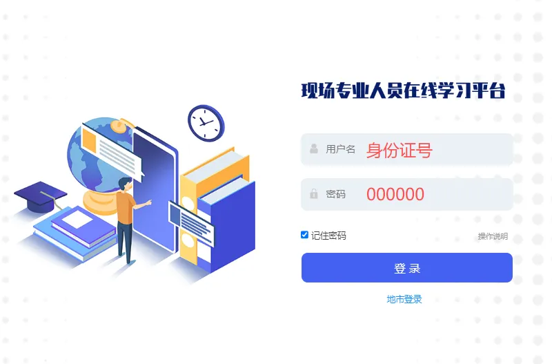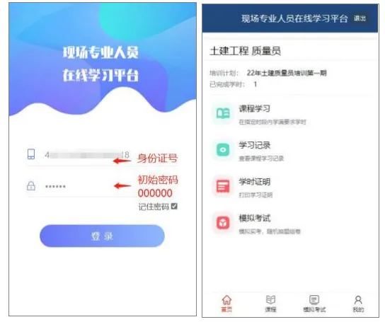 关于学员帐号和密码:帐号是身份证号码,初始密码是六个零“000000 ”。