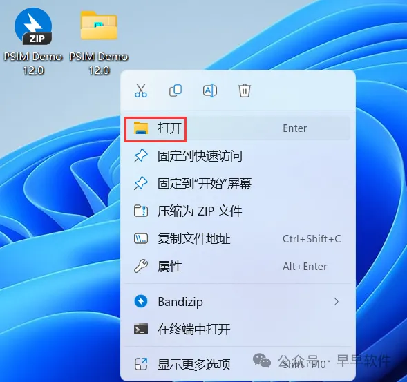 10、回到桌面,右键桌面上的【PSIM12.0.2软件图标】,点击【打开】