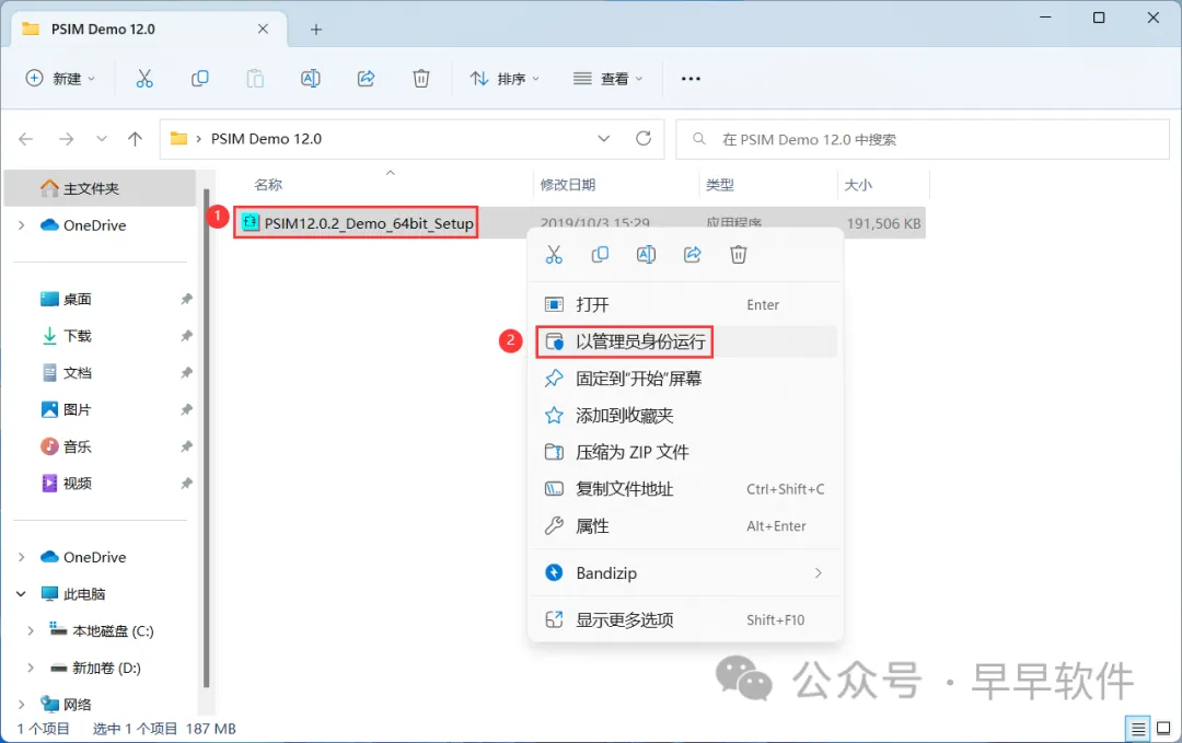 3、找到【PSIM12.0.2_ Demo】应用程序,右键选择【以管理员身份运行】它