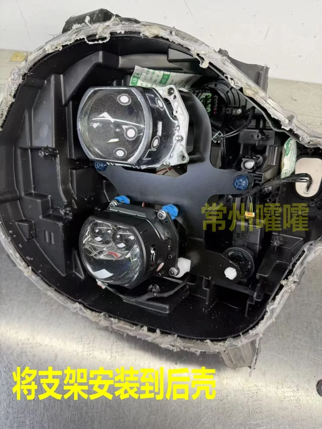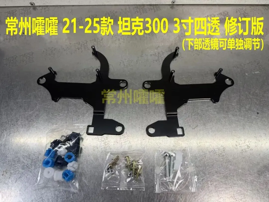 坦克300海拉支架 去年就在结构上进行了优化,下部透镜做成可调机构,即便封好灯后 在后部也可以去调节下部透镜的高低。