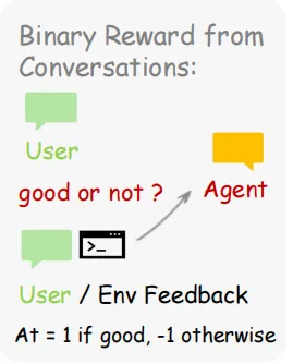 当前的AI agent似乎都在面临同一个问题:当它每次回答完用户问题后,却总是将收到的“反馈”随手丢弃。当用户重新提问了,说明对答案不满意;当测试通过了,说明做对了;当命令行报错了,说明方法有问题......以上种种信号——用户回复、工具执行结果、GUI状态变化——每天都在产生,但也都在流失。