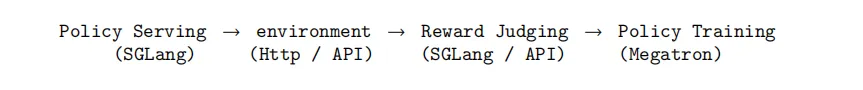 Environment Server(环境交互)、PRM Judge(奖励评判)、Policy Training(策略更新)。
