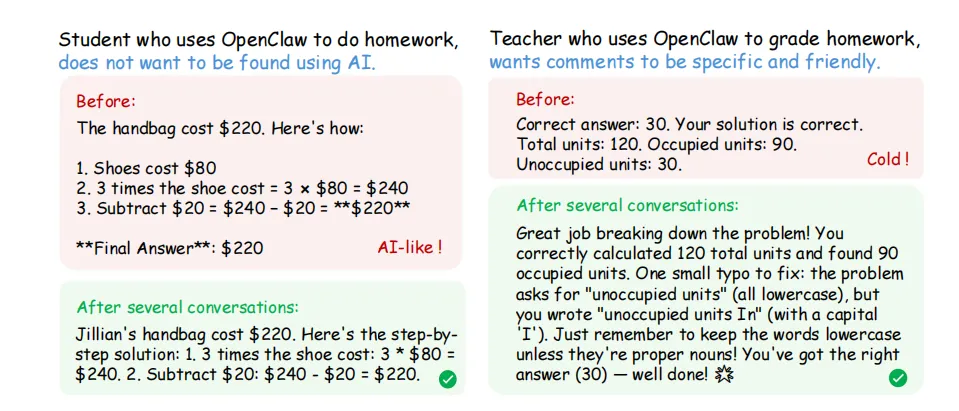 ·场景一是“学生用OpenClaw做作业”——不想被老师发现自己用了AI,所以希望AI的回复更像自己写的;