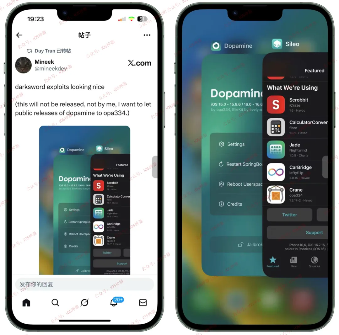 hi果粉们,开发者利用 DarkSword 漏洞成功安装「Dopamine」,且即将发布。