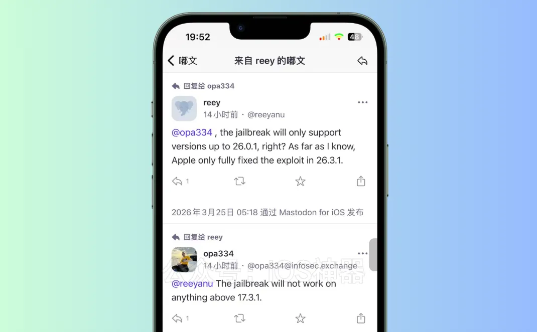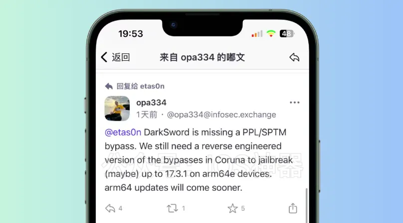 opa334 发布 DarkSword 漏洞:重磅!opa334 新漏洞成功利用,即将支持新系统