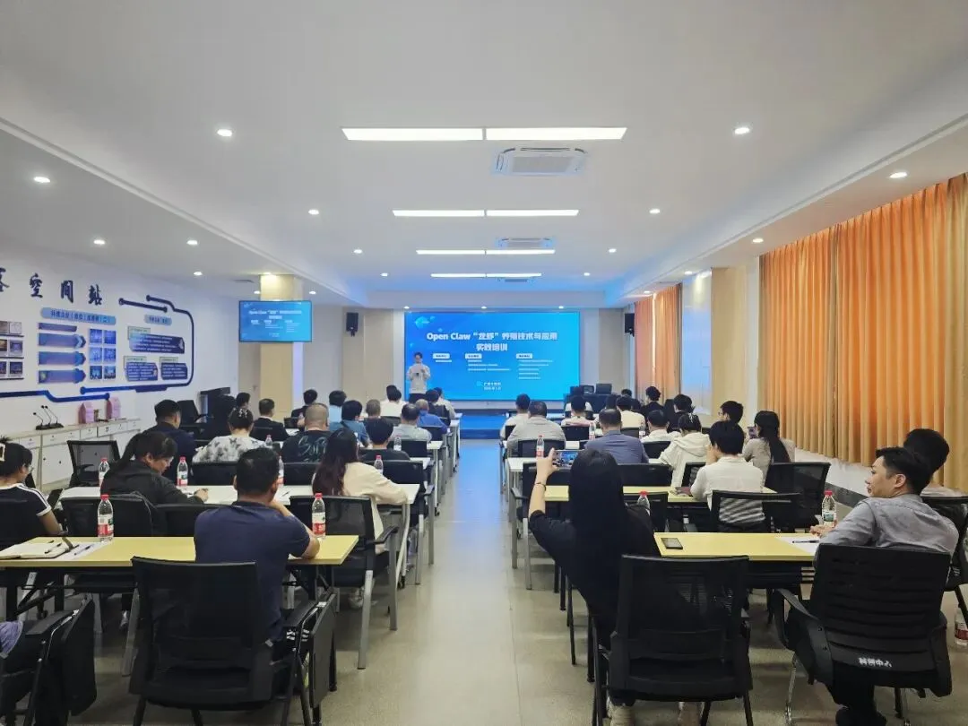 本次培训特邀梧州学院科研处庞光垚博士团队前来现场授课,围绕OpenClaw的核心技术优势、本地化安装部署、场景化落地应用、实操技巧等内容进行系统讲解。从技术原理到安装步骤,从基础配置到行业案例,庞博士团队用通俗易懂的方式拆解“养虾”核心逻辑,现场同步演示实操流程。参训学员认真聆听、积极互动,不少人用手机记录关键知识点,学习氛围浓厚。