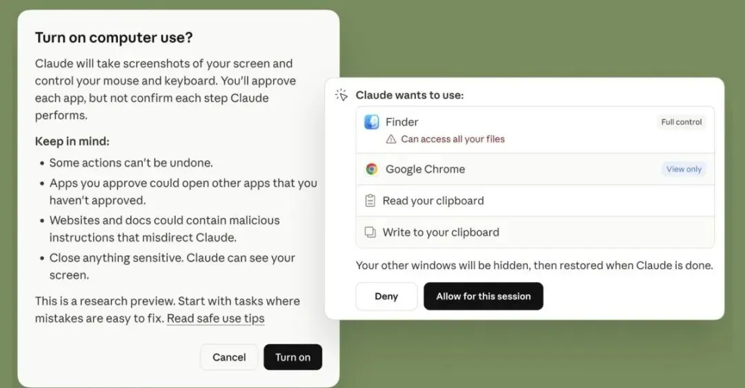 - 操作前会先问你要权限,优先用Slack、Google Workspace这些服务的连接器,没有就用鼠标键盘直接控制屏幕