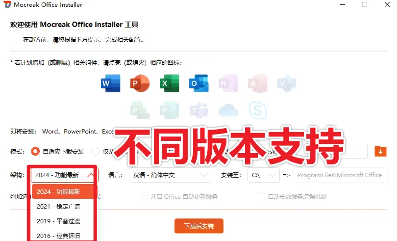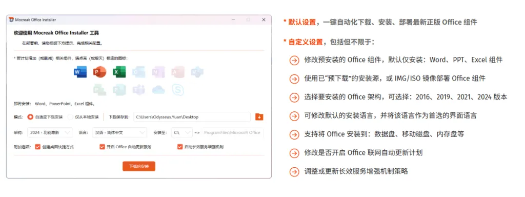 Office全自动一键部署安装,最高支持2024版本,可自定义安装组件,内置激活工具,全免费使用Mocreak!