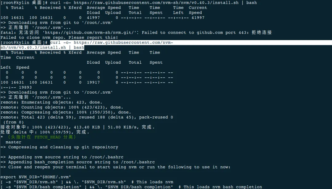 安装新版本 nodejs(网络不稳定多试几次或手动执行脚本):
