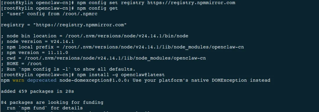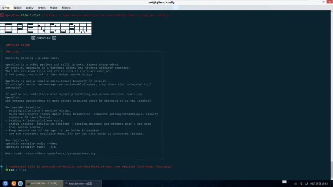 银河麒麟高级服务器操作系统 V10 SP3 安装 OpenClaw 图文教程