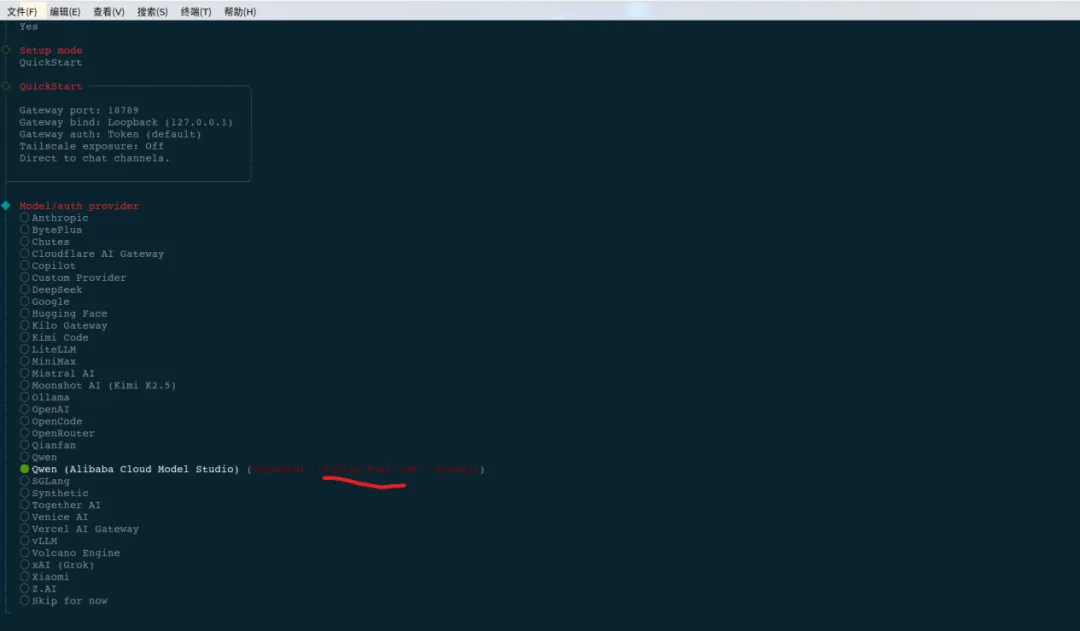 这里我买了阿里 coding plan 就选择 qwen: