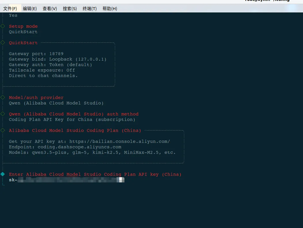 因为我买的国内阿里 coding plan,选第一个,从阿里云复制api key即可