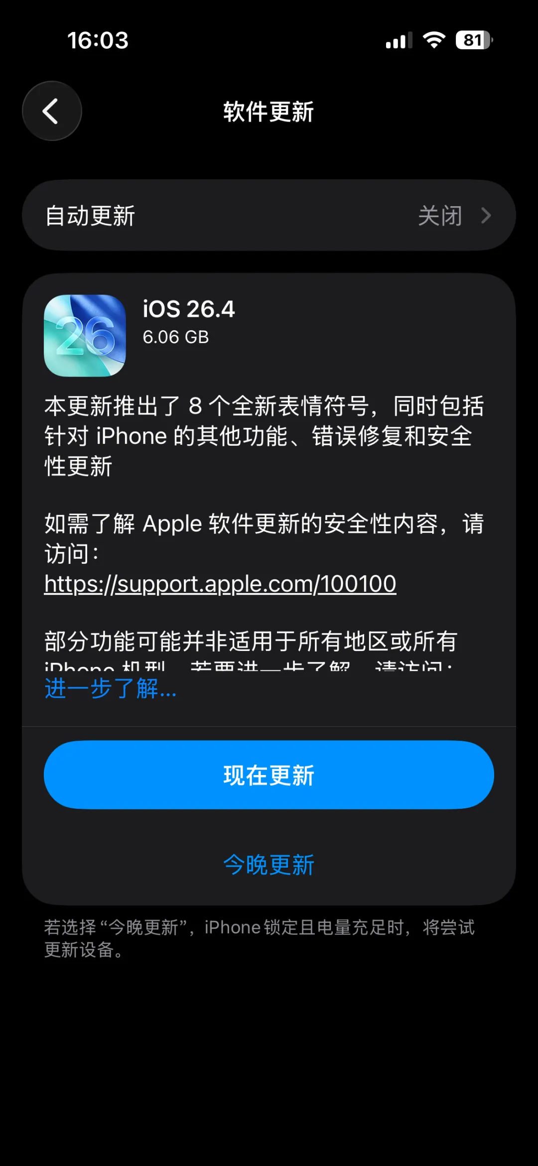 苹果今天悄悄推送了 iOS 26.4 正式版。