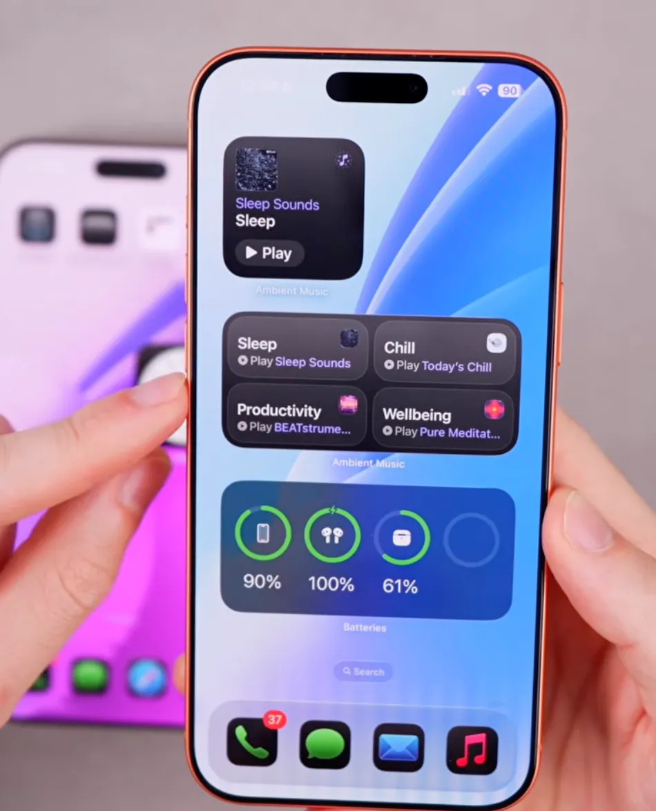 另外,主屏幕新增了环境音乐小组件,分为安睡助眠、放松减压、提升效率和平衡身心四大类,配上全屏沉浸式专辑背景显示——光是视觉效果就已经很治愈了。