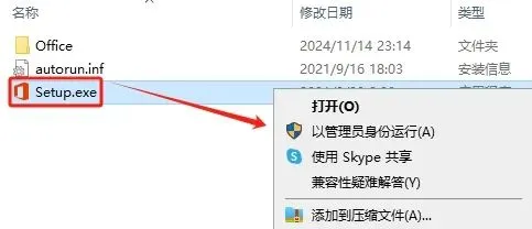 3.鼠标右键以管理员身份运行【Setup.exe】。