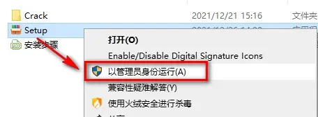 2.选中Setup,鼠标右键选择“以管理员身份运行”