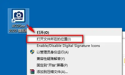 12.复制激活工具 ![]() 13.在ACDSee 2020 旗舰版图标上,鼠标右键选择“打开文件所在的位置” 18.安装结束