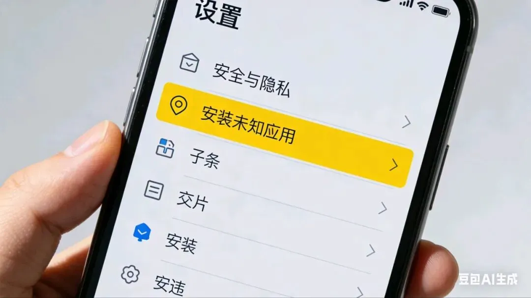 3. 在设置页面里,找到“安装未知应用”选项,点击进入后,选择你用的浏览器(比如“Chrome”“华为浏览器”);