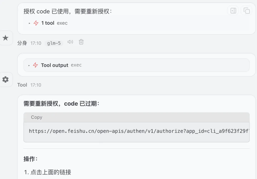 • 它说"飞书 API 限制"——其实是它没搞清楚原因