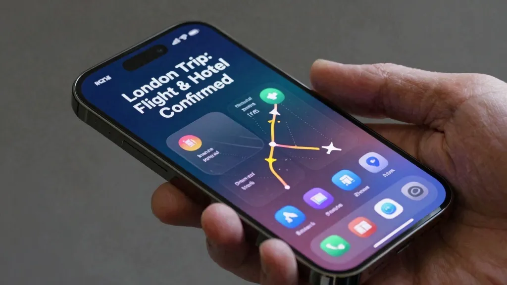 接下来这部分可能会颠覆你的认知。通过全新的“原子化协议”,系统内核开始具备直接调取第三方 App 底层能力权限。想象一下,当你对 iPhone 说“帮我安排明天去伦敦的行程”,你的手机不再是跳出一个又一个 App 弹窗,而是直接在灵动岛内“合成”一个实时的调度中心。