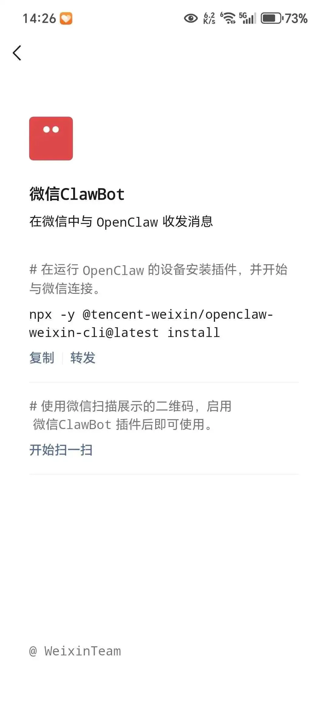 插件安装完成会弹出二维码,直接用微信扫码连接。