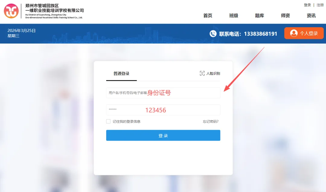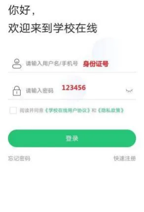 2 、输入账号密码:账号为身份证号,初始密码为 123456