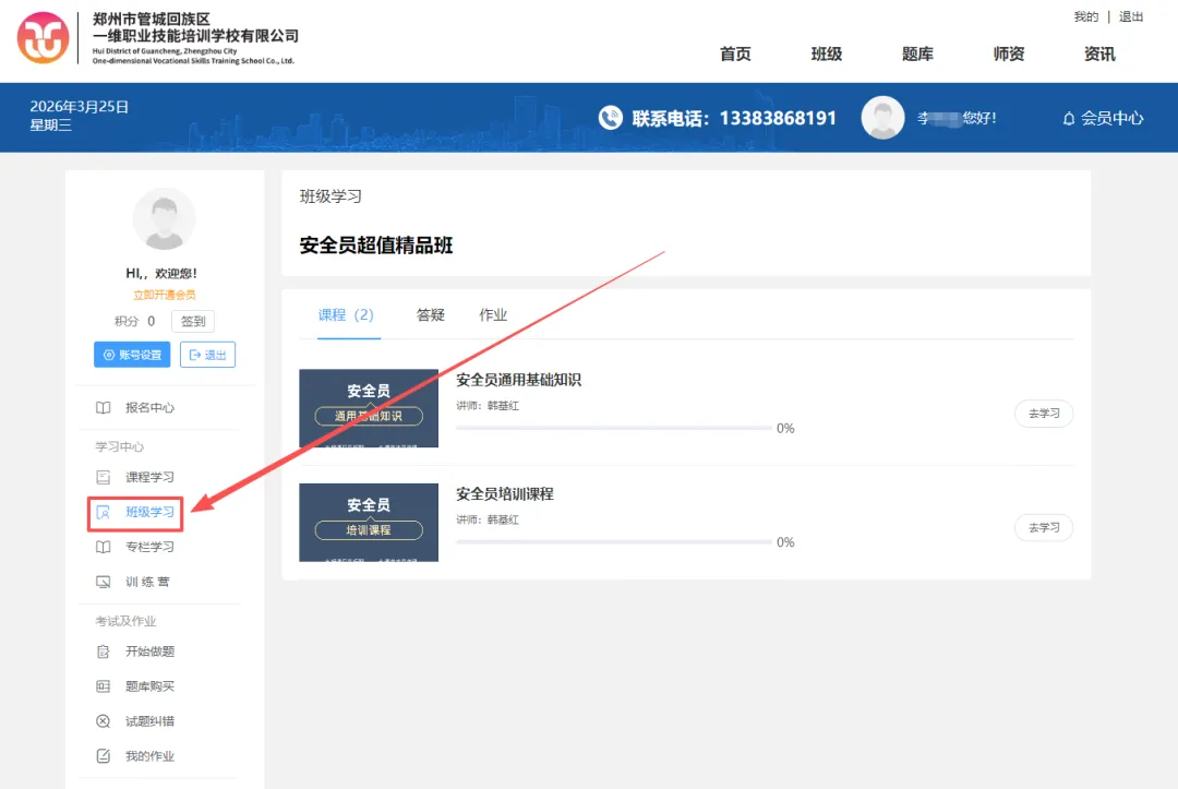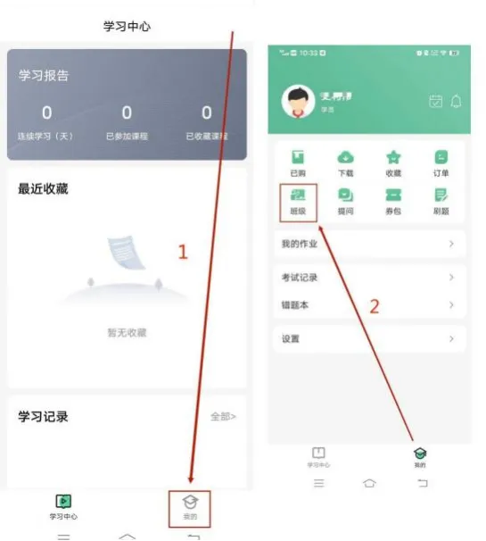 4 、进入“我的 ”页面后,点击班级学习—找到自己的班级