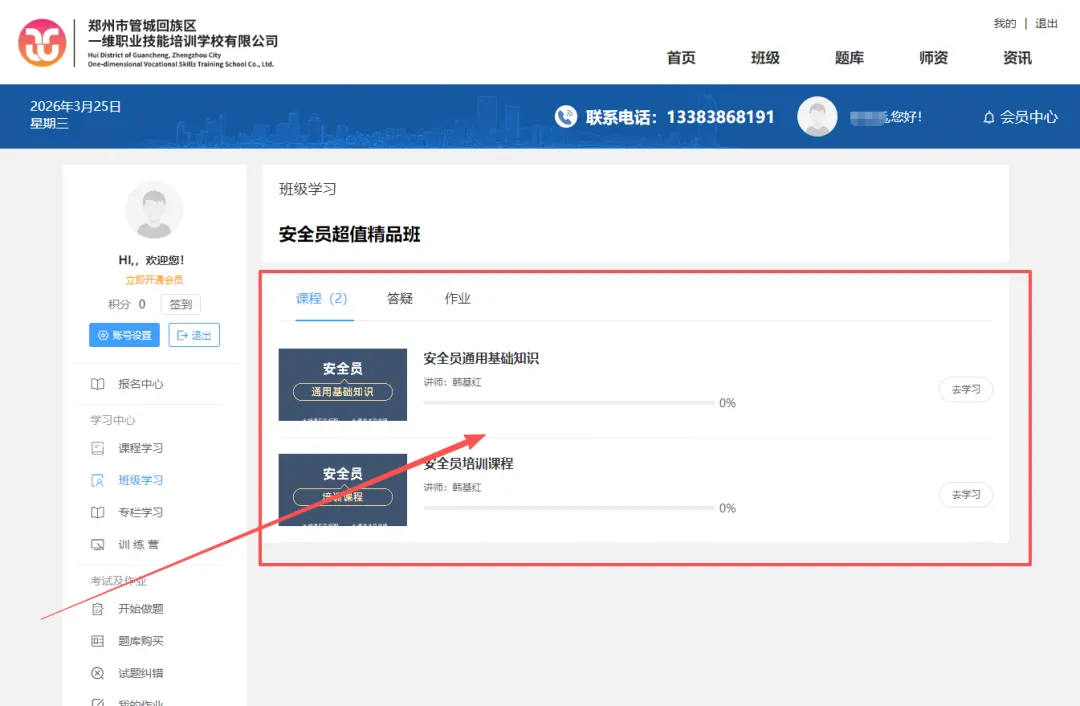 4 、选择课程------开始学习,学习完所有视频课程。