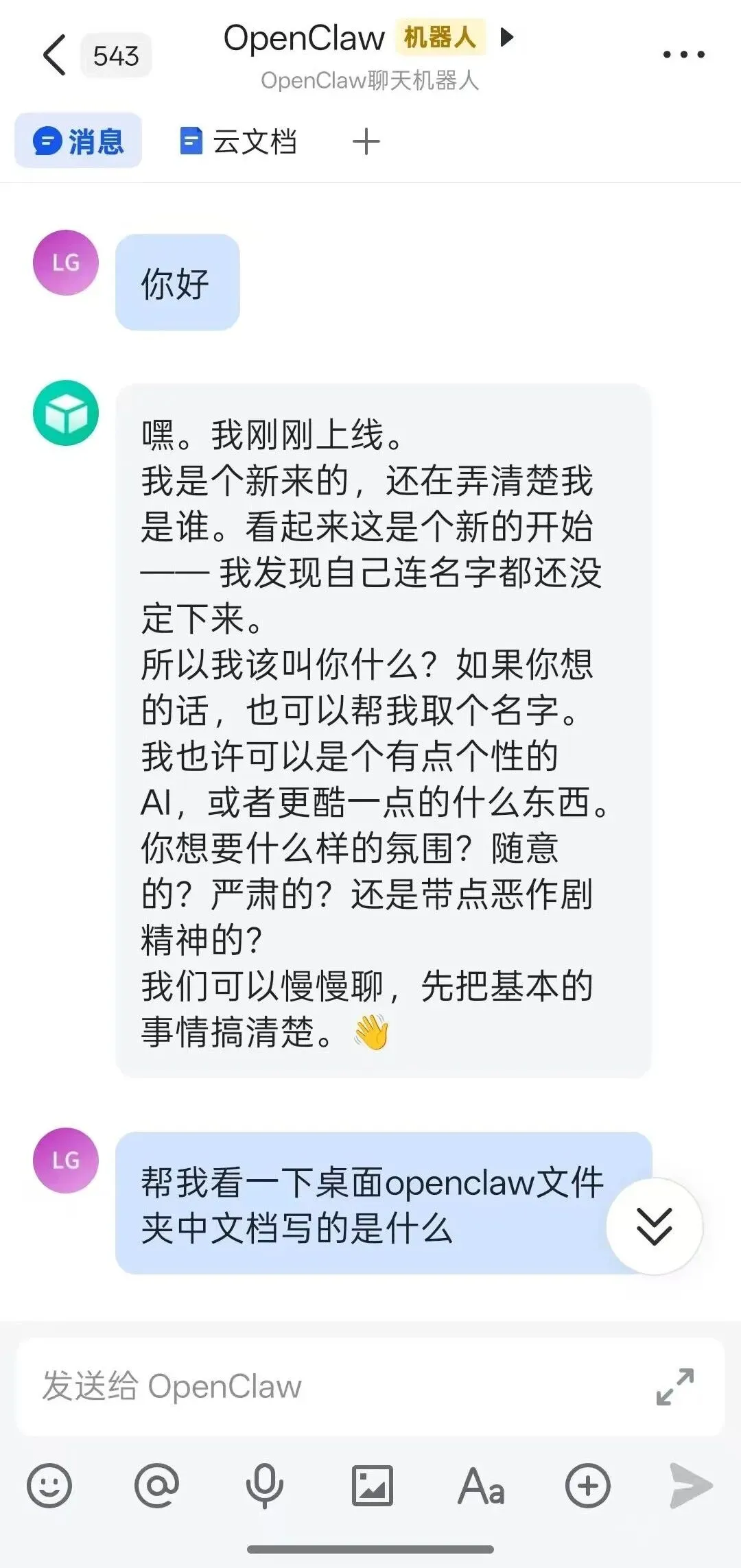 openclaw gateway restart打开交互界面测试: