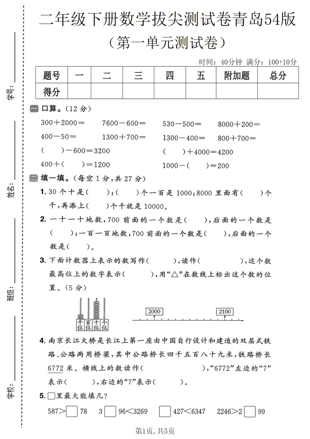 二年级(下)数学 第一单元拔尖测试卷