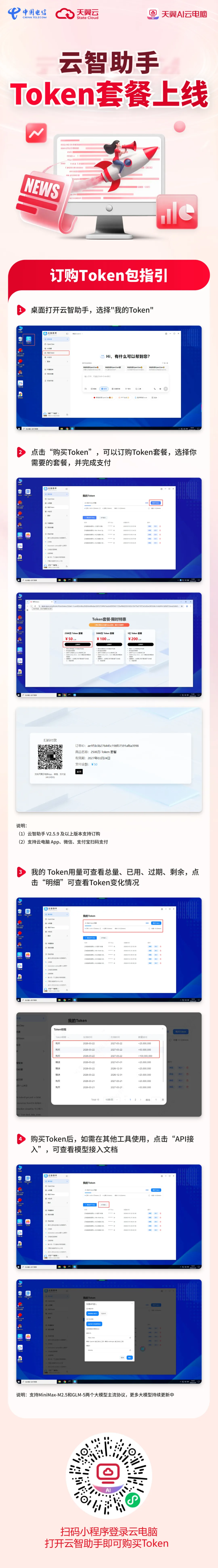 50元+天翼AI云电脑→2500万Token+轻量开发者首选套餐