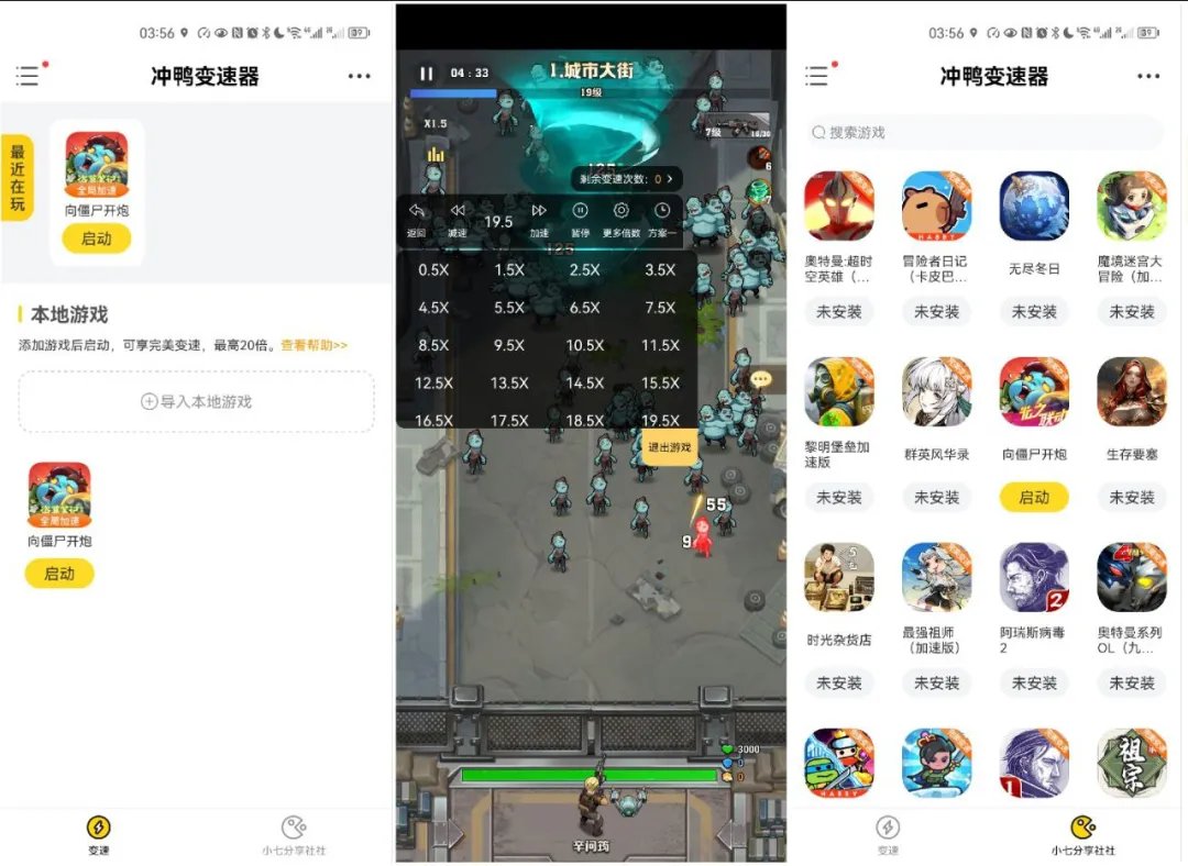 3. 启动游戏,在屏幕侧边调出变速面板。