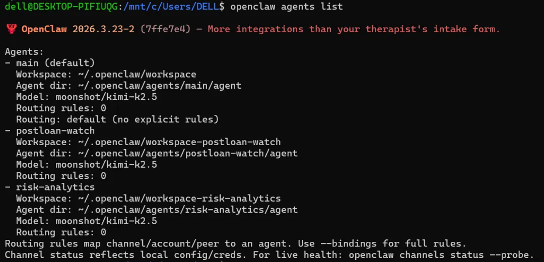 【openclaw agents list 中出现 risk-analytics】