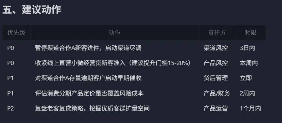 不是只让它“回答问题”,而是让它围绕具体风控场景,去输出真正能交作业的结果物。