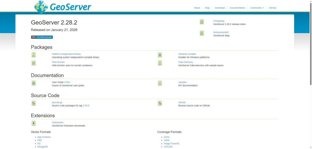 官网地址:https://geoserver.org