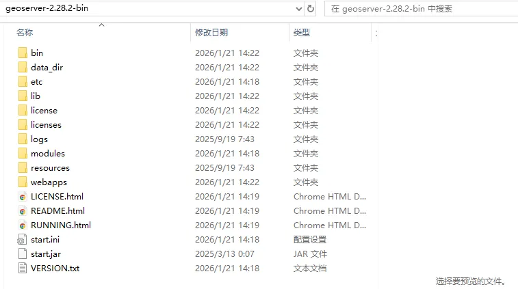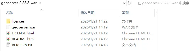 对于GeoServer二进制包文件,直接解压即可。