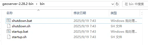 打开bin目录,里面有.sh和.bat两种文件类型。其中.sh为linux启停脚本,.bat为为windows启停脚本。在运行时请确保脚本具有相应执行权限。