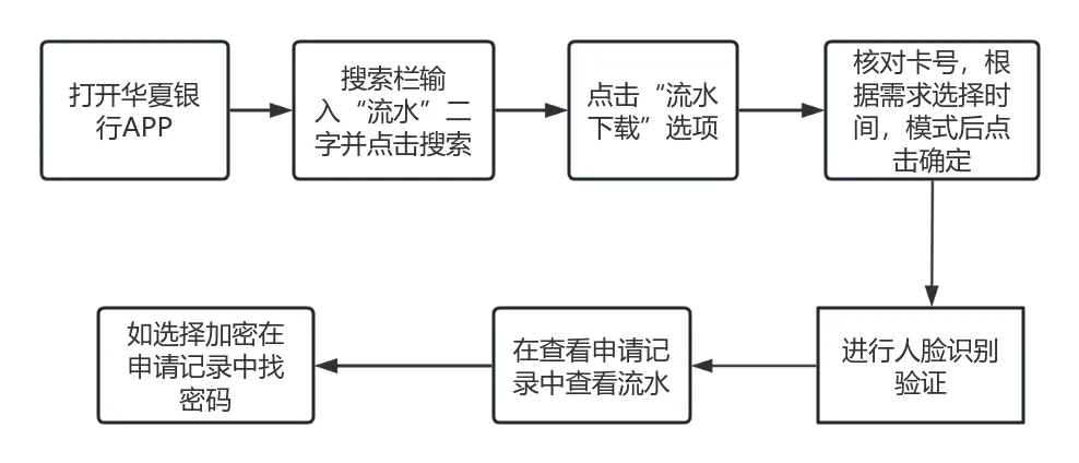 今天要展示的是华夏银行的流水导出步骤。老规矩,咱们还是先上省流导图,一图看懂所有步骤: