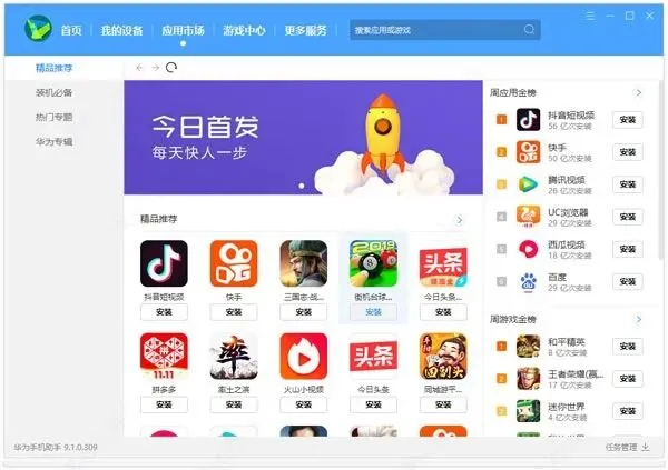 应用市场:海量APP和游戏随心下,安装不用跑手机端: