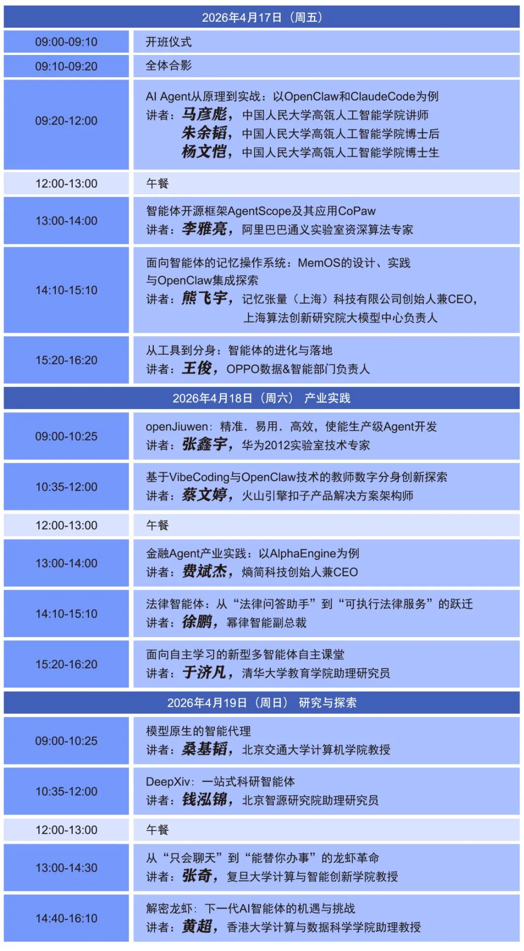 本期ADL聚焦智能体(Agent)技术,以OpenClaw实战为牵引,内容涵盖智能体技术演进路径、平台与框架及金融、法律、教育、科研等垂直领域落地场景,构建“前沿理论+开发实战+产业洞察”的完整闭环,助力学员全面掌握智能体核心能力。
