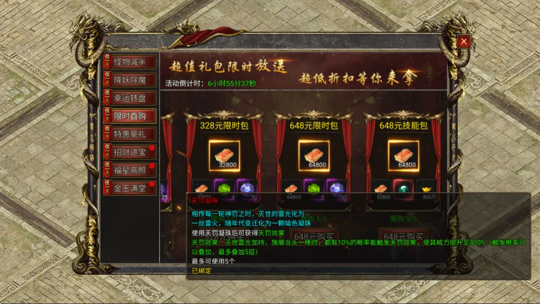 还有涅槃精石和神鼎碎片,时间达到了还有特殊材料天罚凝珠能有概率使神技当头一棒的威力提升至300%。
